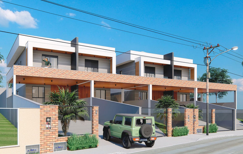 Cada unidade conta com duas vagas cobertas de garagem, uma grande área de integração entre cozinha, sala de estar e jantar, além de contemplar uma exclusiva área externa. No piso superior, encontra-se a suíte master com uma admirável sacada, além de dois quartos e banheiro.